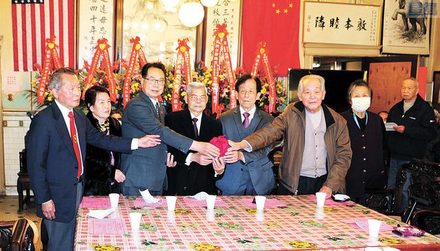 在美西副總理陳均發、元老陳耀泮、顧問袁卓俊、顧問陳素平共同監交下,新任主席陳熙洽、副主席陳德業從滿任副主席陳麗霞手中接過印信,履新就職。