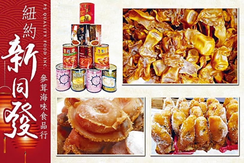 紐約新同發參茸海味食品行專營參茸燕窩、環球海味、鮑魚海參、急凍海產、花旗洋參、高麗紅參、長白山參、各類菇耳、湯料食材、有機食品等。
