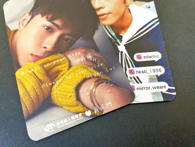香港盲人輔導會特意設計一張以UV打印技術,加入了「呂爵安 Edan Lui」點字及觸感元素的感謝狀,底部的五綫譜用了《My Apple Pie》的樂譜,連右上方彩色琴鍵都是凸起,作為答謝支持今次慈善應援活動的爵屎們,協會又知道大家都喜歡收藏偶像小卡,該會特別製作一款獨一無二,加上Edan點字的限量版小卡作為心意。