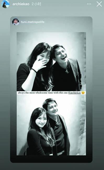 高聖遠是轉發女方發過的照片,所以照片上的英文配文應該是女方寫給他的,從內容來看似乎是在對高聖遠表白。第二張照片是兩人與好友們聚會時拍攝的,該女子站在高聖遠的前面,兩人都露出大笑的表情,氣氛很是歡樂。女方曾在去年3月曬出慶生照,透露自己度過了28歲的生日,而高聖遠今年52歲,比女方大24歲。