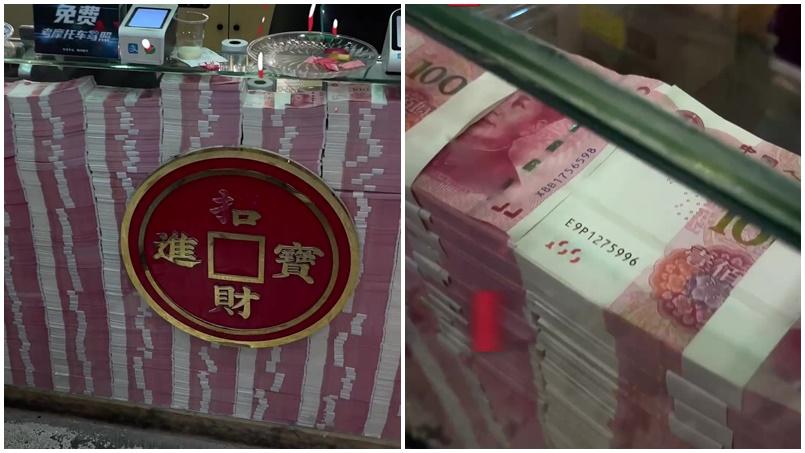 曹女士其後詢問正在工作的服務員:「這真的是真錢嗎?」對方冷淡地回應「是真錢」,似被問過百千次的,已厭倦向顧客解釋。餐廳工作人員接受訪問時則表示:「是真的,有1,400萬(人民幣,約值1719萬港元),這是老闆放的,是有點火的,很多人拍照……玻璃都是防彈的。」