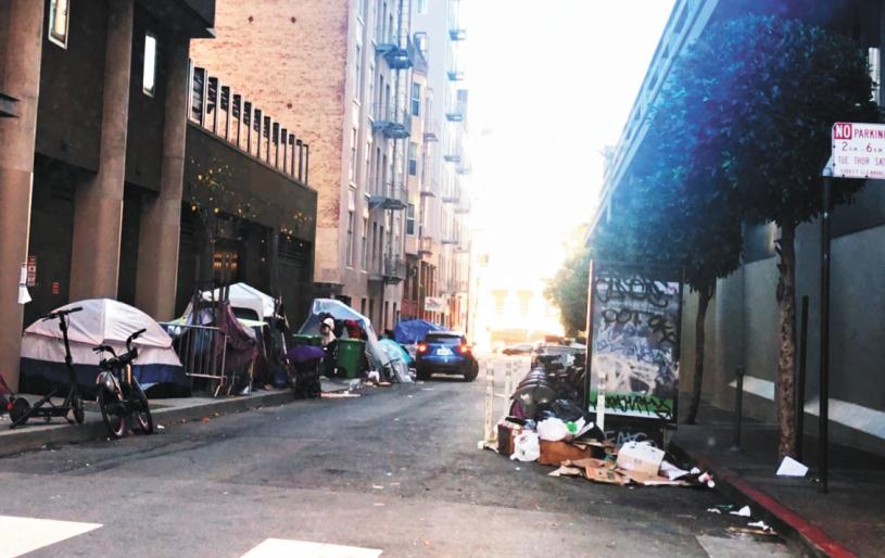 田德隆區的狀況到底有多糟糕,值得頒布緊急狀態來應對嗎?記者穿過近10個街區,發現原本就臭名昭著的街頭狀況,在新冠疫情期間街上人流減少的情況下更加嚴重。街頭的垃圾隨處可見,散落在各個角落,垃圾桶似乎無人處理,帳篷顯眼都在各個街道出現,因藥物濫用導致行為健康問題的人們肆無忌憚的躺在街頭,甚至有人不穿好褲子就出現。如果駕車經過驚鴻一瞥,會以為這是一個完全無人管理的城市,毫無秩序可言,更不會聯想到這是位於西海岸因美麗著稱的知名旅遊城市三藩市內。