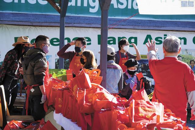 美化華埠行動委員會(Be Chinatown)昨天在灣景區方李邦琴社區農場,向長者及低收入家庭派發500份新春禮袋。