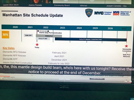 多個政府部門日前向第一社區委員會報告有關華埠社區監獄的進度,政府僱用了一間有超過20多年具經驗的拆卸公司Gramercy Group詳述拆卸現在監獄的裝備及設施,拆卸即在二月份展開,至明年五月份完成,整個遷拆費用為1億2千5百萬(125 million),會議上除了第一社區委員提出各種疑問外,仍然有不少民眾對監獄十分抗拒,建議新市長亞當斯重新批審。同時,華人社區為要反抗到底,計劃在本周六發動反華埠監獄大示威。
