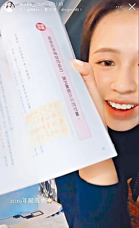 (星島日報報道)女團COLLAR成員Winka(陳泳伽)向來予人樂觀開朗的感覺,前日她在社交網限時動態分享了多條短片,片中她表示在執拾書櫃期間,發現書本內有些自己寫下的金句,更自爆曾於2019年陷入低谷期,當時情緒比較差,甚至沒有動力做事情,後來便培養了睇書及寫日記的習慣,並表示:「我諗每個低谷都係我哋反彈嘅好機會」。