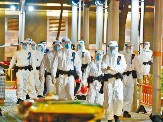 另外,有初步陽性個案涉及變異病毒株,當局昨晚八點半圍封新葵芳花園C座及觀塘安順大廈,目標今早約七時完成行動。