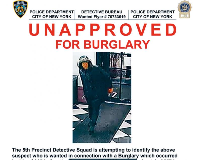 圖為格蘭街糕點房竊案嫌犯。NYPD