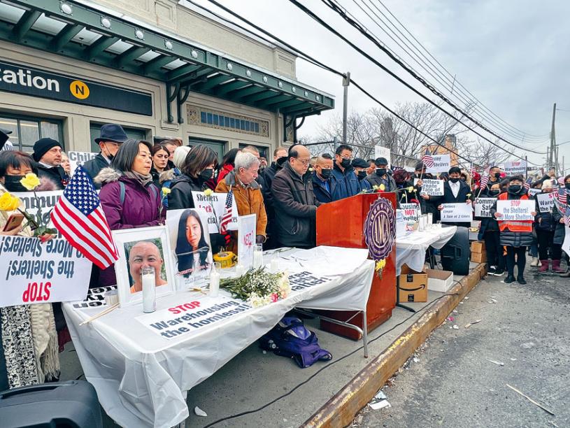 追思活動在8大道夾61街的地鐵站前舉行,群眾齊聚在主持者逐一念出近月多名遭遊民攻擊無辜犧牲者的名字,包括在地鐵站遭推下軌道被撞斃的華女高慧明,上周在華埠公寓內遭刺斃的韓裔女子李尤娜,同時也追思於去年在8大道見義勇為犧牲的閩青鄭勇等。