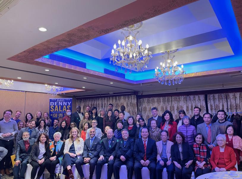 由聯合民主黨主辦的州眾議員參選人薩賚思(Denny Salas)參選造勢會23日晚在華埠舉行。來自華埠和下東城的多個組織機構及民眾代表出席活動,對薩賚思表以支持。
