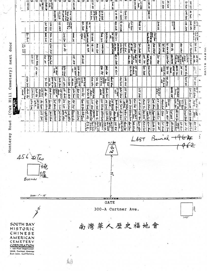 由於當年美國政府實施排華政策,華人在美國不能購買房產,死後也不能葬於本地墓園,更不可能跟白人同葬在一個地區,在1900年由八個華人社團包括寧陽公所、廣州公所、裕和公所、合和公所、瑞興公所、甄海公所、甄和公所等,出資買下了位於聖荷西Curter Ave 300號A的Oak Hill Cemetery旁140×160呎的一塊地,送給南灣的華人作為墓地,也讓當時還鄉夢斷的華工有了安葬之處,這就是南灣華人百年墓地的由來。