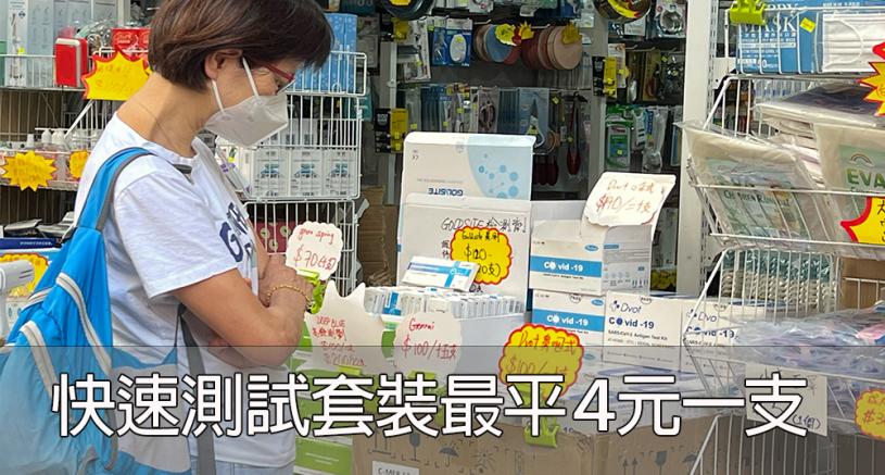 而在深水埗電子特賣城,繼續有快測劑低價出售,普遍每枝在10元以下,其中愛康及Diagreat DAT的快測劑售價更低至4元一支。不過兩款牌子都未在消委會的快測劑搜尋器找到。