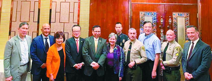 羅省中華總商會27日在天普市舉行記者會披露賈斯康所通過的法律法規中的漏洞,及警局紀錄的犯罪率。現場邀請到了現任洛杉磯縣首席副檢察長Jason P Lusting,洛杉磯縣前副檢察長Kathleen Cady,現任洛杉磯市副檢察官Richard Kim, 洛杉磯縣警局天普市分局局長Mark Reyes及便衣隊長Richard Lewis,和康普頓學區警察局局長William Wu。