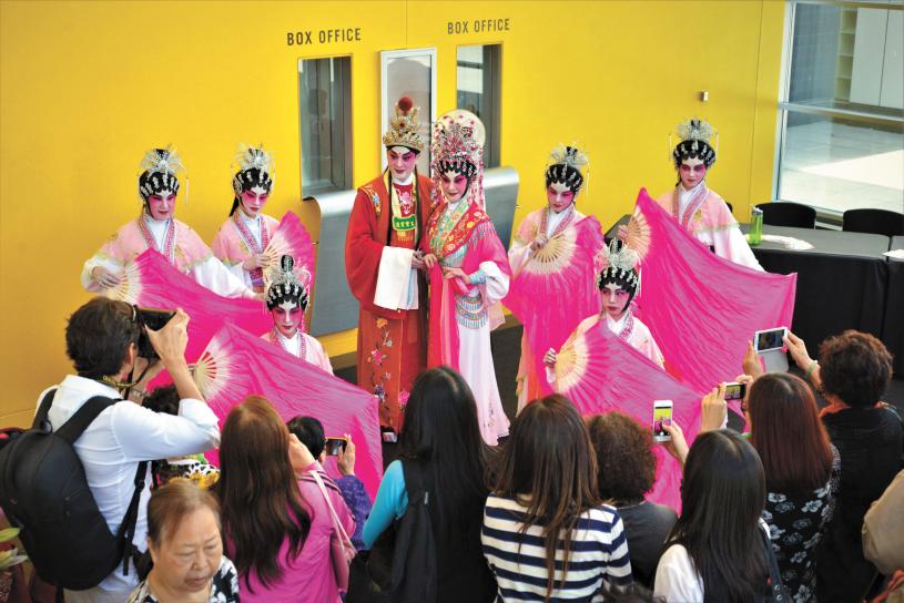 美國國會圖書館美國民俗中心的檔案記載,第一個抵達美國的粵劇劇團「鴻福堂」,於1852年開始在三藩市演出,之後彈丸之地的華埠相繼有六家戲院開張,規模最大的大舞台戲院和大中華戲院,均有七百多個座位,粵劇折子戲、長劇,幾乎每天都在輪番上演。