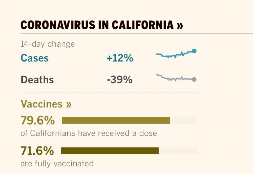 據洛杉磯時報,過去一周,加州COVID病毒感染病例率上升了 10%,從每天 5,700 例新病例,增加到每天 6,300 例。衛生專家指出,官方通報的病例數據可能被嚴重低估,因為現在民眾可以在家中進行廣泛的自我檢測,其結果未必報告衛生機構。