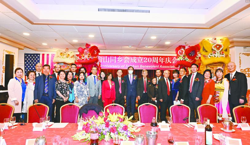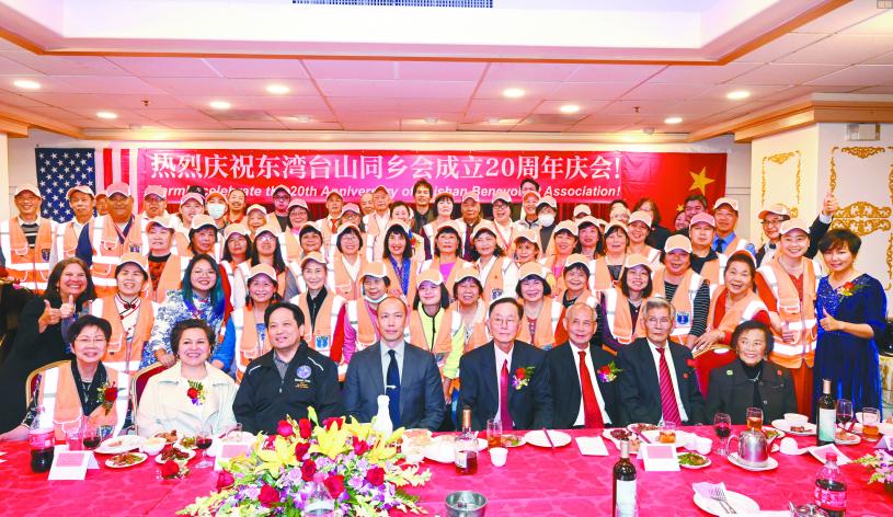 東灣台山同鄉會於5月1日晚假座屋崙金牡丹海鮮茶寮舉行成立 20周年慶會。中領館僑務處主任楊雪峰;州眾議員米亞.邦塔代表黃斯林;屋崙市市長薛麗比代表時晨光;阿拉美達市長馬莉蘭、前市長翠西;屋崙市議會議長勵琪;聖利安祖市議員布菜恩;聖利安祖市前任議員李國斌;亞拉美達縣縣警指揮官勝利亞;屋崙市警察局副局長黃家華、中尉余劍倫、沙展鐘迪倫;東灣水務局經理譚蓮娜;中華總會館代總董關家澄;東灣國慶委員會執行主席黃建成;OCIC 屋崙華埠社區促進會副主席周能原、安東尼鄭、秘書長鄧康傑、執行總監李嘉欣;舊金山灣區中國統一促進會會長關家澄、第一副會長李國宏、副理事長黃楚文、辦公室主任吳康華;美國華裔精神健康聯盟執行長彭一玲等嘉賓出席聯歡。副主席黃艷紅擔任司儀,李嘉欣總監擔任現場英文翻譯。台山同鄉會主席馬作林;元老余景炎、溫新燕;顧問團團長黃譚寶珊;副主席朱健行、李錫倫、陳銳漢、陳佩芳、伍煥森、雷海、鄺爵彪、曾繁榮、曾榮歡、馬小芳、黃艷紅、賴秀珍等和職員鄉親在現場歡迎各界貴賓,並有序安排賓客入席。同鄉會國術團醒獅親臨助慶,呈送吉祥,現場奏響壯嚴豪邁之中美國歌,為聯歡慶會拉開序幕。