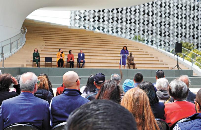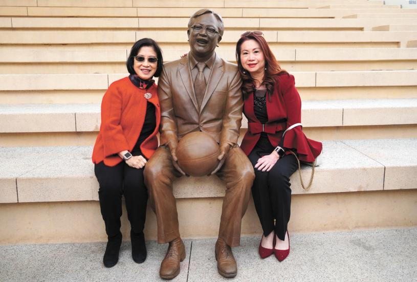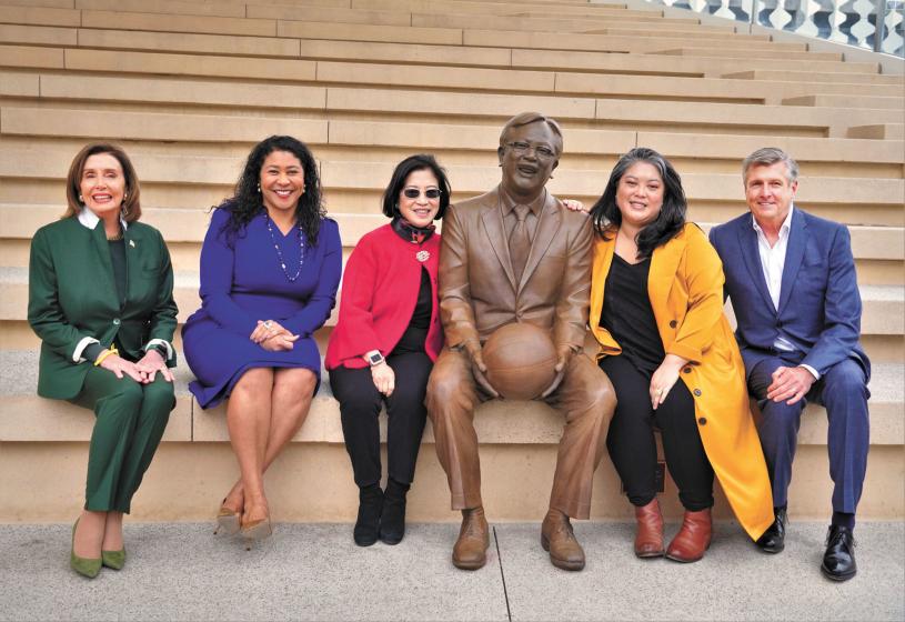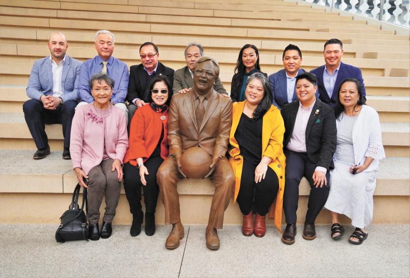 昨天,前勇士隊總裁兼首席運營官里克韋爾茨(Rick Welts)和三藩市市長布里德、聯邦眾議院議長普洛西、李孟賢夫人林進敏、長女李應鈺及李孟賢的兄弟、家人,及台下一眾政府官員、李市長好友,出席了李孟賢銅像的揭幕儀式。