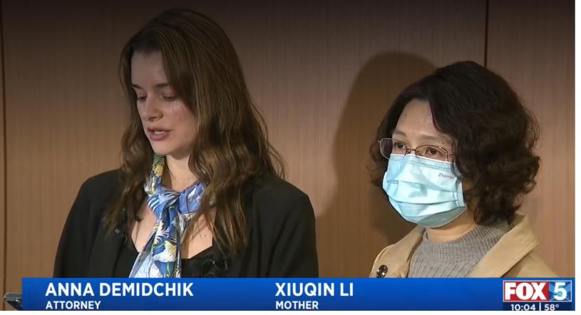 杜宇浩的母親李秀琴(Xiugin Li, 音譯)聽證會後在律師陪同下發表聲明,身為醫生的她近日特別從中國飛來,希望在這段艱難的時期支持兒子,計畫至少在美國待上三個月。