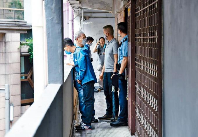 現場皇后大道中一八九號啓豐大廈二樓一單位,七十二歲戶主姓勞,單位裝有鐵閘,窗戶裝上鐵網防盜;勞返內地已逾年,單位也被用作貨倉,儲存大量貨物包括古董、音響器材及各種外幣。