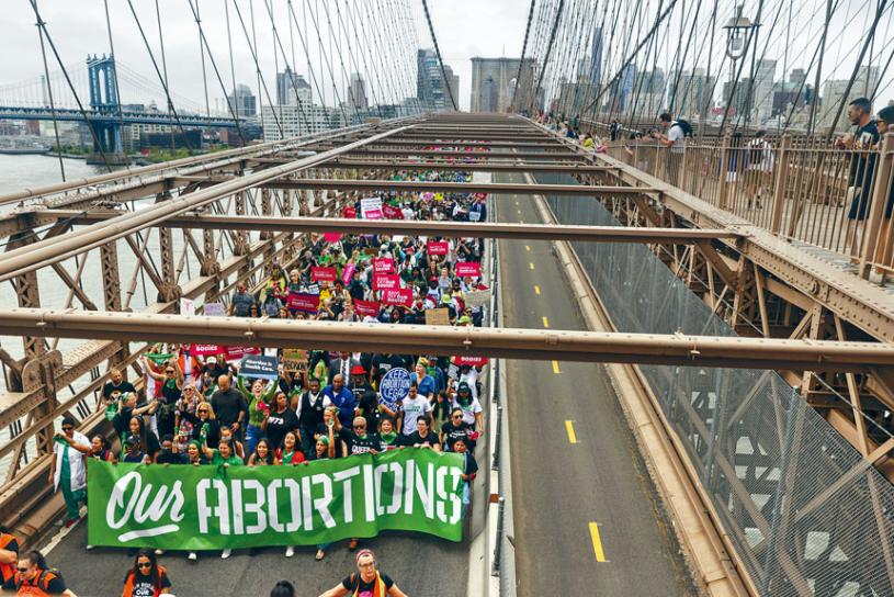數千名支持墮胎權利的憤怒抗議者,14日遊行穿過布碌崙大橋,抗議最高法院可能推翻「羅訴韋德案」(Roe v. Wade)裁決。