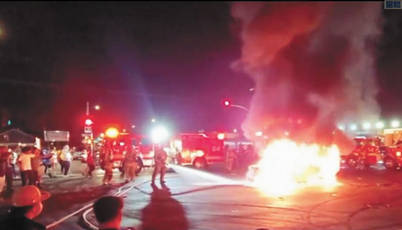 南洛杉磯威爾布魯克(Willowbrook)地區周六深夜發生飆車族非法占用十字路口的車輛炫技情事,手機視頻更捕捉在中央炫技的汽車起火燃燒,然而圍觀群眾似乎不擔心自身安全、反而興致更高昂靠近中央火球自拍,甚或還有民眾阻礙消防員救火,已遭警方逮捕。