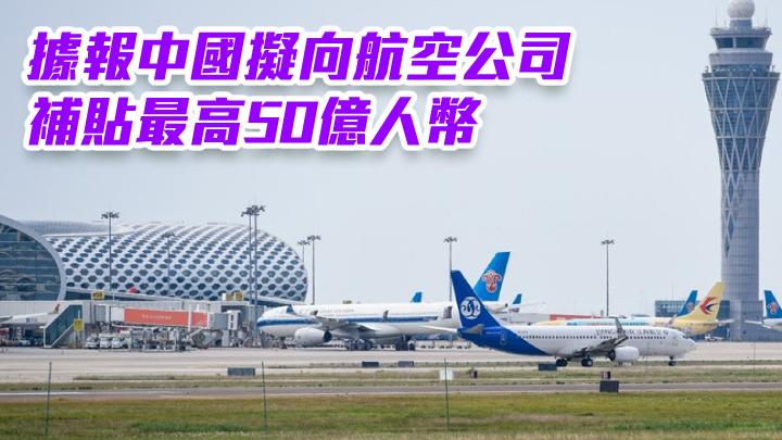 《環球時報》英文版引述消息報道,中國民航局考慮向航空公司補貼最高50億元人民幣,為期兩個月,以振興受疫情打擊的航空業。