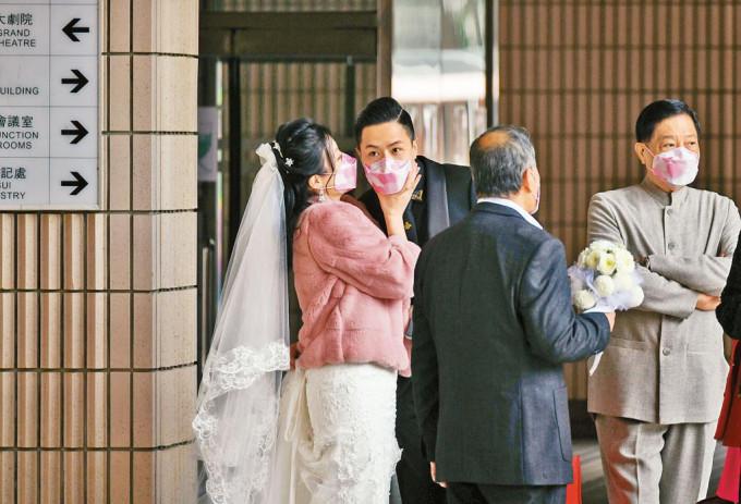 (星島日報報道)新冠肺炎疫情放緩,政府將於周四放寬一系列社交距離措施,包括將宴會活動人數上限增至一百二十人,市民可以重新舉行婚宴及商務會議。婚禮顧問透露,由於本周五及周六分別為五月二十及二十一日,「520」(網路情人節)及「521」的普通話讀音分別與「我愛你」及「我願意」相近,是結婚熱門日子,部分原只能舉行簡單婚禮新人,近日紛急忙補訂當日飲宴場地「擺酒」;亦有部分原打算年底結婚的準新人,因擔心未來將會爆發第六波,因此紛決定提早舉行婚禮,甚至希望於一至兩個月內完成,因此婚宴場地於周五及周六均旺場。香港餐務管理協會會長楊位醒表示,近期紛錄新人訂枱舉行飲宴,但由於時間趕急,普遍只會宴開數席,招待最為熟稔的親戚朋友,僅盼於疫情反彈前完成婚宴。
