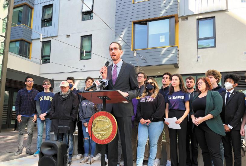 非牟利組織CalMatters報道,州參議員威善高(Scott Wiener)早前提出SB886法案,欲加快大學學生宿舍項目的落實速度,因為這些項目隨時受訴訟和漫長的環境評估過程而延宕,獲得不少社運學生的支持。