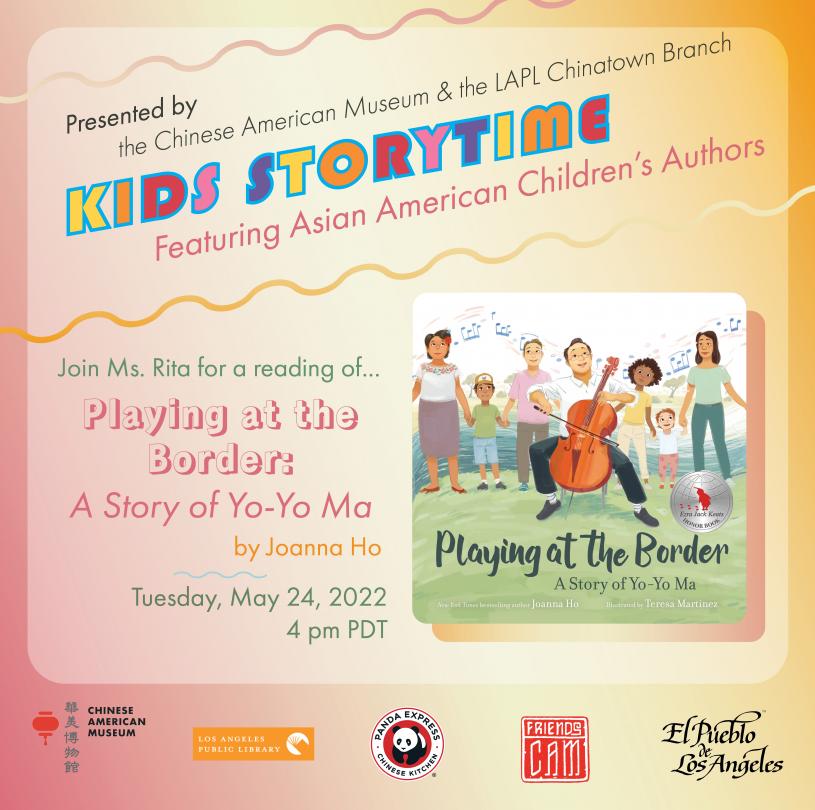 【洛杉磯訊】為慶祝美國亞太裔傳統月,華美博物館與華埠圖書館將於5月24日(星期二)下午4時至4時30分(美國太平洋時間)舉辦《兒童故事時間》,華埠圖書館兒童圖書管理員羅沛筠 ( Rita Law) 將朗讀美國亞裔作者 Joanna Ho 撰寫的《在邊境演奏:馬友友的故事》(Playing at the Border: A Story of Yo-Yo Ma)!
