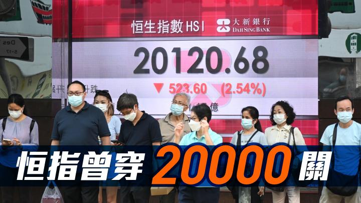 美國零售商最新業績欠佳,市場對通脹加劇憂慮升溫,隔晚美股三大指數齊插水,加上騰訊(00700)首季業績差過預期, 港股早市走軟,恒指低開497點,最多曾插719點,低見19924,其後跌幅收窄 ,2萬大關失而復得,恒指結束4日連升,收報20120,跌523點或2.54%;科指收報4090,跌169點或3.98%;國企指數收報6899,跌190點或2.68%,成交金額1211.15億元。