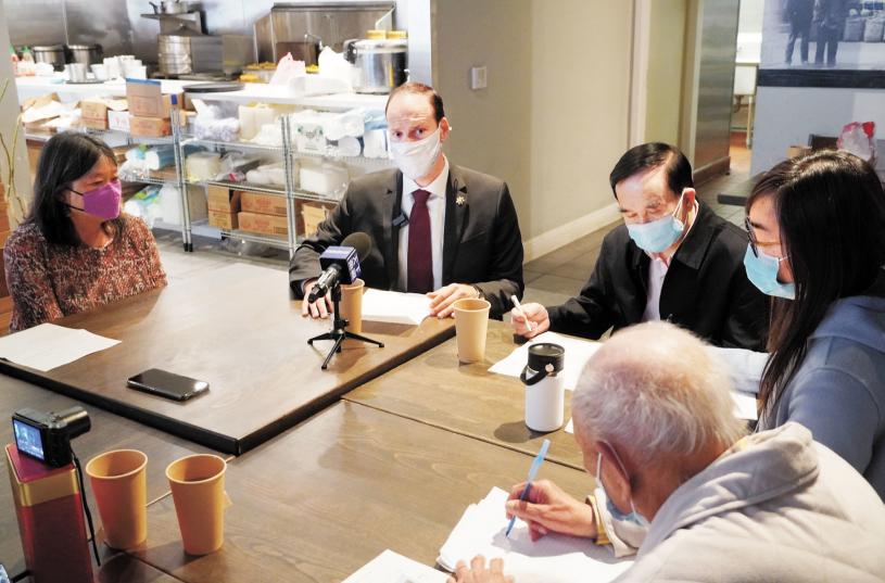 地檢官博徹思昨日(20日)上午,與三藩市社區住客聯會主席梁榮浩及部分董事局成員、前市參事李麗嫦等一起,在華埠茶敘。
