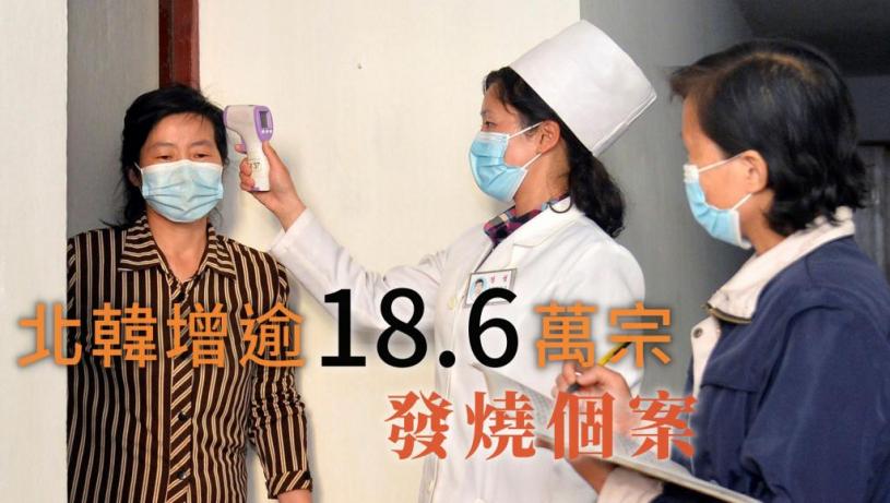 北韓新增超過18萬6千宗發燒個案,再多1人死亡,累計個案增至264萬人,共67人不治,死亡率約為0.003%。