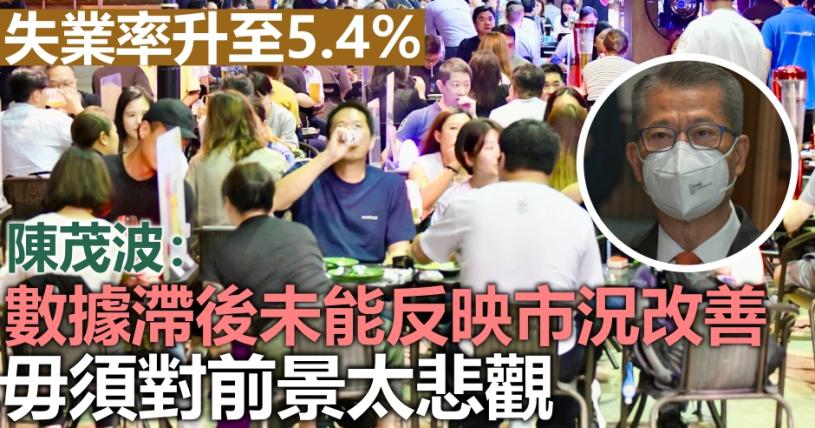 最新失業率升至5.4%,財政司司長陳茂波於網誌表示,數據會有滯後,就業市場正逐步好轉,認為毋須對前景太過悲觀,否則容易錯過經濟改善的勢頭或新機遇。