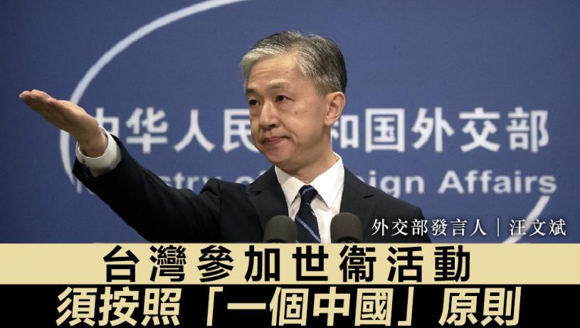 第75屆世界衞生大會(WHA)將於本月22日至28日召開。大陸外交部發言人汪文斌周六回應,台灣參加國際組織活動必須按照「一個中國」原則來處理。