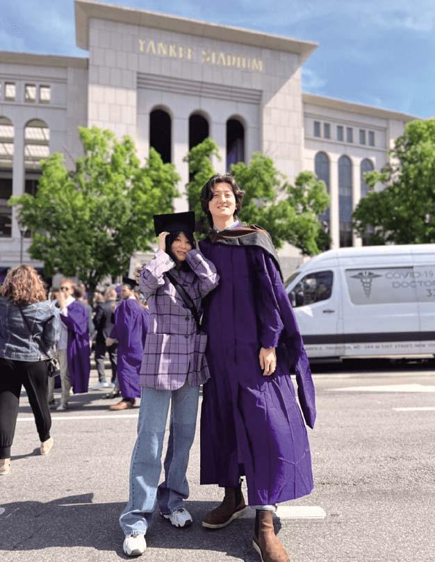 黃璐分享與男友的恩愛合影,恭喜男友從紐約大學畢業,感慨當日在地鐵上看到許多穿紫色衣服的人,還看到了成為紐約大學榮譽博士的美國歌手黴黴。
