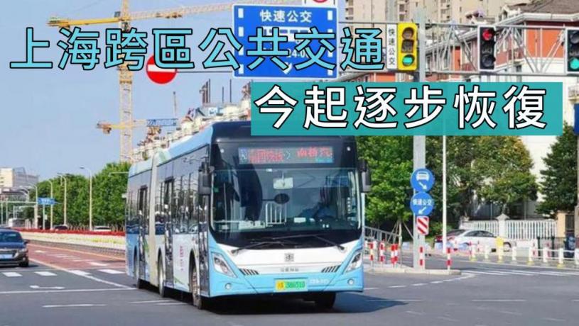 上海因新冠疫情,封控55天後,今(22日)起,跨區公共交通逐步恢復,但乘客持有綠色健康碼及48小時內核酸陰性證明等。