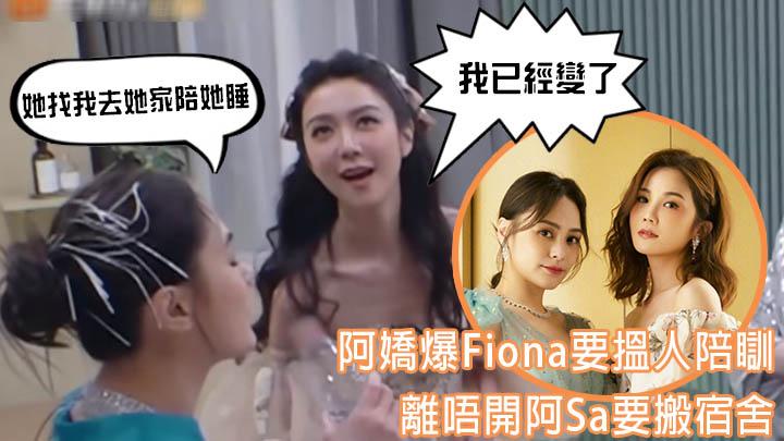 而早阿Sa一步到的薛凱琪(Fiona)睇到其中一幢有阿嬌個名牌,似乎見同聲同氣就打算入住,阿嬌看到她就即笑說:「你一個人來?你是想跟我同房嗎?」Fiona即表示:「不想!」阿嬌大爆與Fiona私下的好交情,「她找我去她家陪她睡。」Fiona反駁稱自己在北京住了一年,已經學識獨立,阿嬌似乎一臉不相信,只敷衍表示:「變了就好了。」