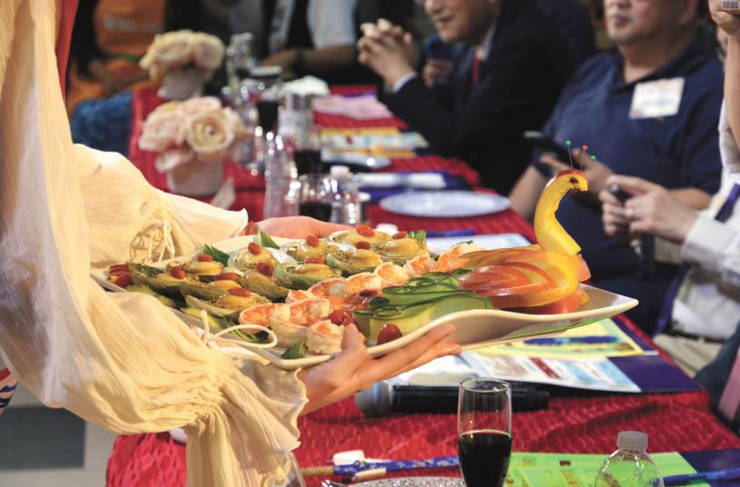 2019星島親善小姐余金 與2022年4月封面佳麗張璿在現場,為各位評委送上選手們的參賽菜品。