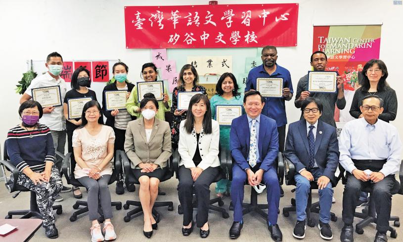 附設在矽谷中文學校的台灣華語文學習中心,22 日舉行結業成果展,17位應屆畢業生有8 位來參加當天的中華文化課程,課後由文教中心主任莊雅淑頒發結業證書。矽谷中文學校校長寇惠風表示,華語文中心自 2021 年9 月成立至今,已有秋季班、冬季班、春季班三個基礎班次,三個月為一期,九個月為一學年度,造就47 位學員。