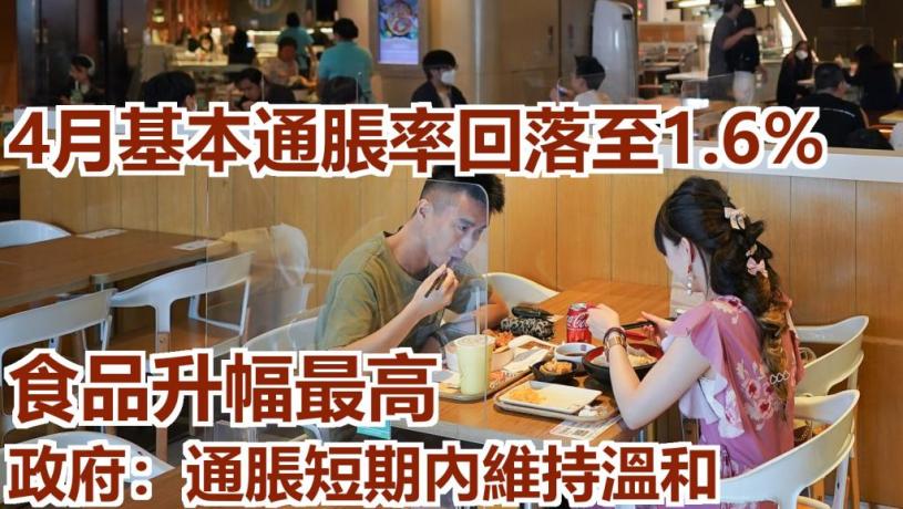 政府發言人表示,4月基本消費物價通脹率輕微下跌至1.6%。受惠新鮮蔬菜供應轉趨穩定,基本食品價格的升幅放緩,儘管仍然顯著。同期,外出用膳及外賣價格的升幅隨着本地疫情退減而加快。能源相關項目的價格繼續錄得顯著升幅。展望將來,許多主要經濟體的通脹高企,預期會為外圍價格繼續帶來壓力。不過,因本地成本壓力仍然大致輕微,總體而言通脹在短期內應會維持溫和。政府會繼續留意情況。