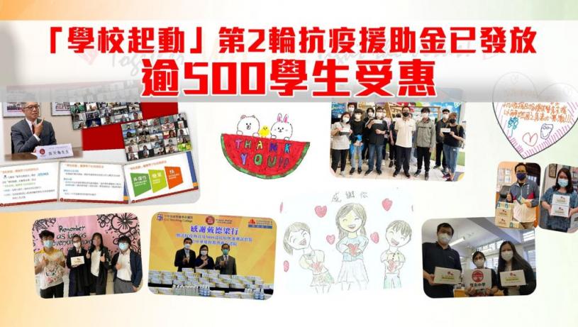 「『學校起動』關懷學子抗疫援助金」於去年設立,旨在向受疫情影響而使其家庭陷入經濟困境的「學校起動」計劃的同學及其家庭提供緊急經濟支援。基金會指,第2輪支援500萬港元現金及物資已全數發放。