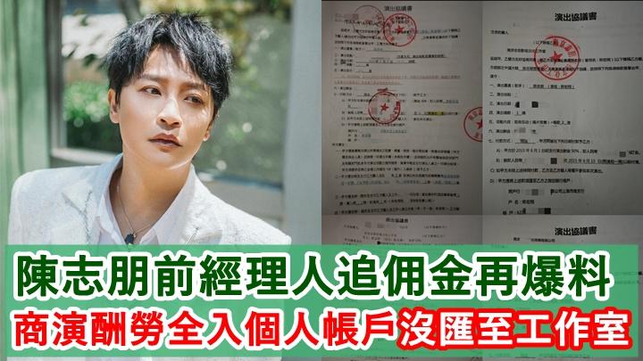 台灣「小虎隊」出身的男星陳志朋到內地發展多年,日前卻遭14年來一直合作的經理人威廉數臭長期拖糧,陳志朋之後雖透過助理發5點聲明澄清,稱雙方合作以來是口頭合約、固定薪酬,不架在拖欠佣金,但威廉於23日兩度發出聲明反擊,更揭陳志朋的「不規範操作」,又強調本來就應該給佣金,公開的「演出協議書」更意外曝光陳志朋的表演酬勞金額。