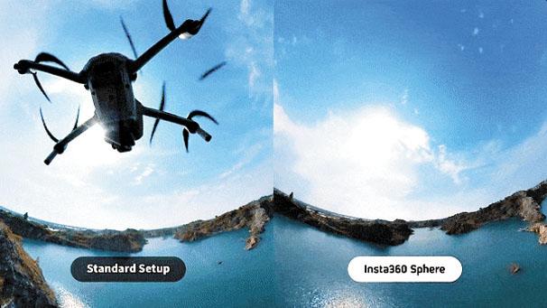 中國知名行動及360度全景相機製造商影石科技(Insta360)推出一款有趣的無人機全景相機Insta360 Sphere,它能附加於大疆創新Mavic Air 2或Air 2S無人機的周圍,讓用家拍攝5.7K 360度全景影片或製作一般2D影片,用家其後可重新建構片段。更甚的是,Insta360的技術確保無人機在鏡頭中「隱形」。