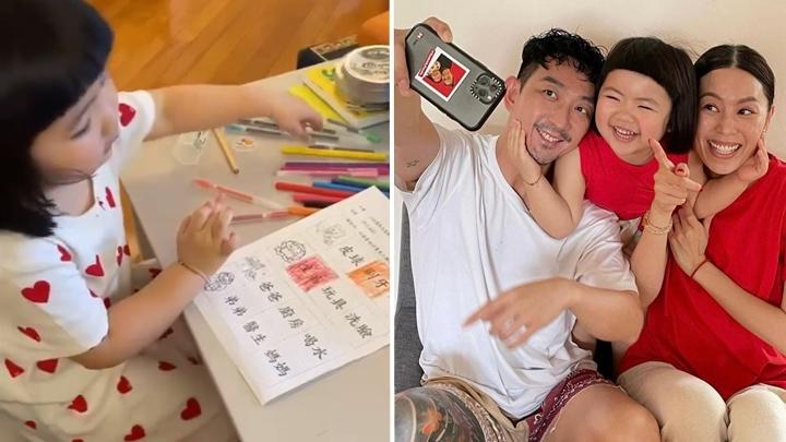 李璨琛(Sam)的4歲女兒李元元(Lucy)最近已經復課,昨天(26日)Lucy媽在社交網分享了一條李璨琛在教Lucy 做中文功課的短片,片中Lucy 好chill 地一邊唱歌,一邊做功課。不過Lucy媽就大爆李璨琛英文及數學方面都是「嘔血」,除A至Z只能夠順序讀出,就連正方形和長方形都搞不清。