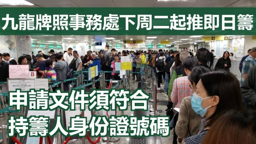 除派發即日籌號外,其他服務安排不變。九龍事務處會為經網上預約駕駛執照相關服務的市民提供櫃位服務,並提醒市民在牌證到期前盡早預約。未能取得籌號或未有預約者,可經網上、投遞箱或郵寄方式遞交牌照申請。網上續領正式駕駛執照及網上預約駕駛執照相關服務的連結如下:網上申請續領正式駕駛執照(按這裏瀏覽);網上預約駕駛執照相關服務(按這裏瀏覽)。