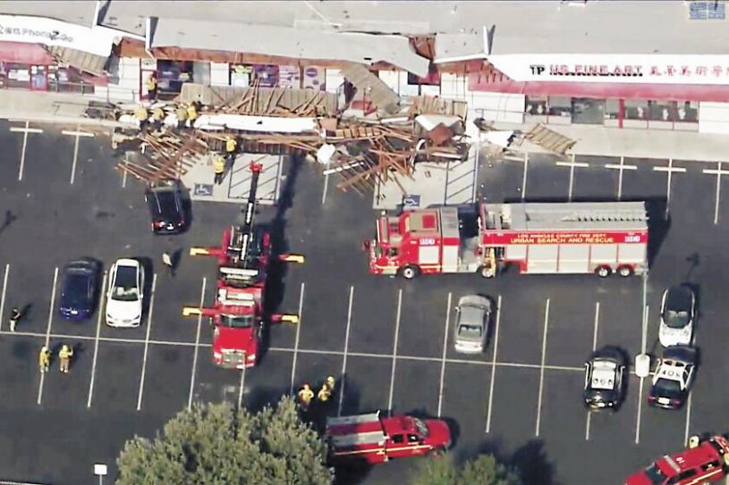 洛杉磯縣華人聚居城市天普市(Temple City)於5月25日下午發生一起坍塌意外,當地一個小型商場部分店家的正面牆體倒塌,導致6人被困在內。