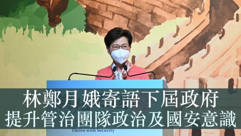 林鄭續指,過往兩年在中央領導下,本港落實完善選舉制度,深化各政府部門及公營機構的國安意識及政治擔當,均是立竿見影的防範工作。但香港在維護國家安全的工作仍是初階,形勢依然嚴峻複雜,《國安法》實施仍然面對不少挑戰,寄語下屆政府進一步提高管治團隊的政治、國安意識以及大局觀。