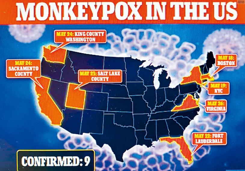 聯邦疾控中心(CDC)26日確認了美國第9例猴痘病例,一位近期曾去過非洲國家的維珍尼亞州婦女感染了這種罕見病毒,維珍尼亞州也成為繼麻州、佛州、猶他州、華盛頓特區、加州和紐約州之後全美第7個確認猴痘病例的州份,CDC主任瓦倫斯基(Rochelle Walensky)當天則警告說,猴痘現在也許正在美國擴散。