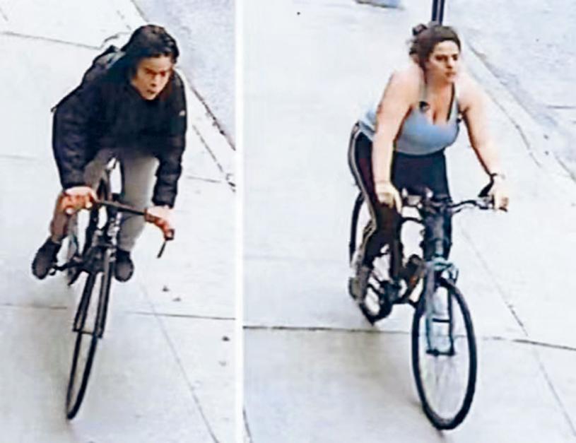 根據警方所提供的信息,涉案團夥為2名白人男女,年齡均在20歲左右,案發時均騎著一輛單車。其中涉案男子留著深色齊耳發,穿著黑色外套,下身為灰色長褲,腳蹬一雙深色運動鞋,背著一隻深色雙肩包;涉案女子則扎著丸子頭,身穿一件淺灰色背心,下身為黑色緊身褲,腳蹬一雙運動鞋。