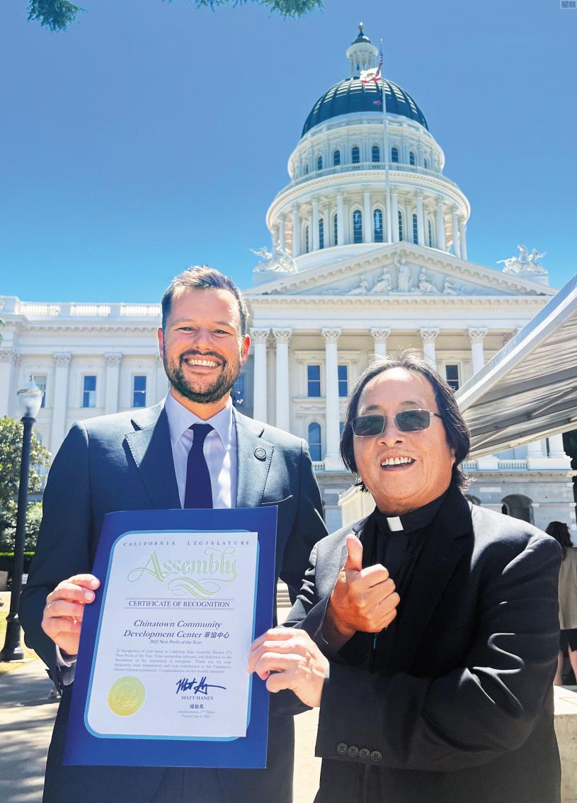六月八日為「加州非牟利機構日」,加州議員及不同機構的領導人等逾百人齊集加州首府,出席一個盛大的戶外頒獎午餐會。由加州第十七區眾議員楊馳馬(Matt Haney)提名,華協中心榮獲CalNonprofits 2022年度加州最佳非牟利機構大獎。