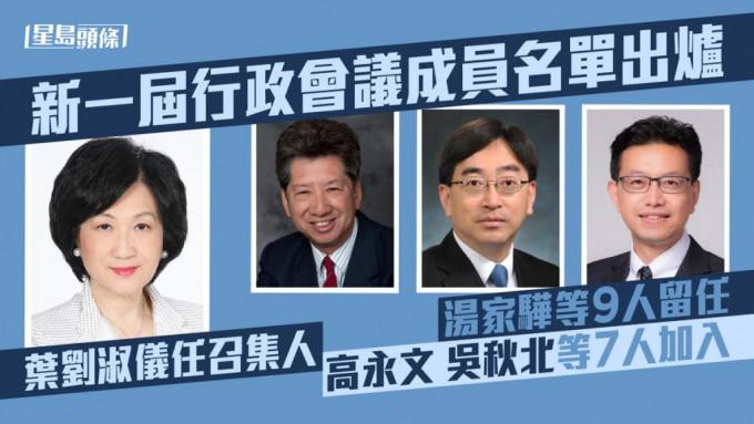 (星島日報報道)候任行政長官李家超昨日公布新一屆行政會議成員名單,非官方議員人數與本屆行會成員一樣,都是十六人;當中九人是現屆行會成員,七位新任成員,包括前食衞局局長高永文、李家超競選辦副主任陳清霞、前恒生銀行行政總裁梁高美懿、有公職王之稱的恒生大學校務委員會主席鄭慕智、立法會議員陳健波、李克勤和吳秋北。十六位非官守議員中,有八位是立法會議員,達半數,是歷屆比例最高。行會召集人由新民黨主席、立法會議員葉劉淑儀出任。葉太表示,立法會議員在行政會議的比例是歷屆比例最高,能加強行政立法關係。